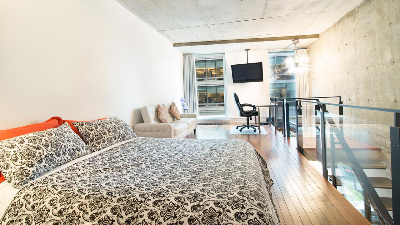 With many apartments in the International Quarter, the best district of Montreal, we can meet all your needs, whether it is a studio, a modern and luxurious apartment or a chic-industrial loft.All our apartments are ready for use. They come fully furnished and equipped with everything you need, including, cookies, fruits, linens and silverware.
